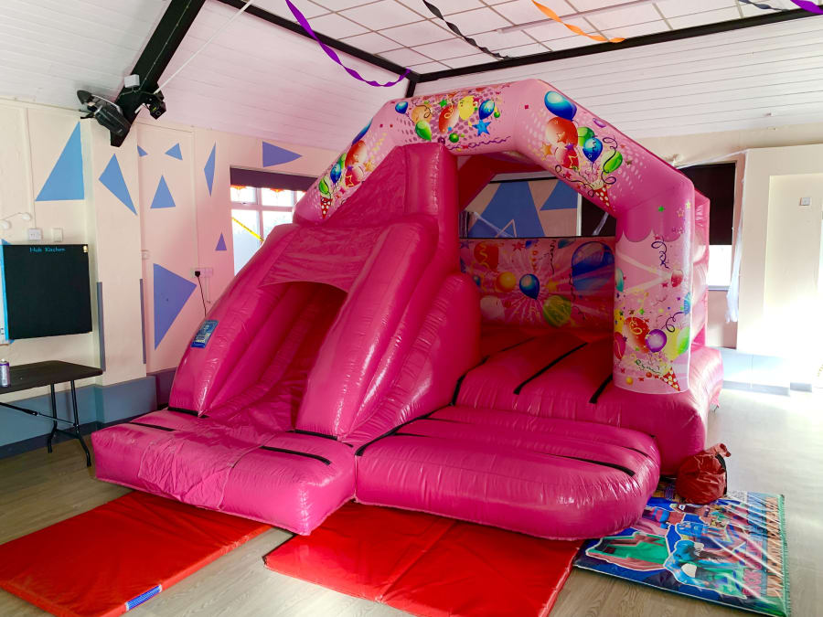 Here we have another brand-new product from us here at Jack-in-the-Box bouncy castle hire. This is the massively popular pink party bouncy castle with built-in front slide. These bouncy castles are great at any party as the kids can bounce and slide to their hearts content. These Bouncy castles are available to hire in Bromsgrove, Droitwich, Redditch, Blackwell, Barnt Green and all other areas in Worcestershire.