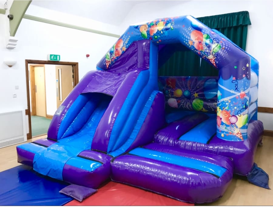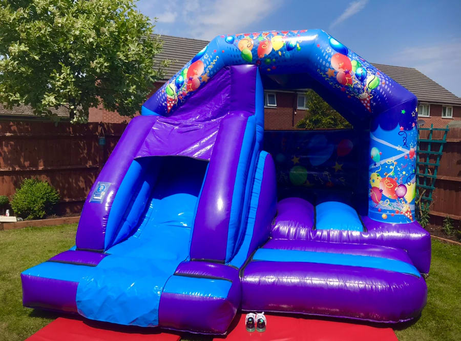 Here we have another great product from us here at Jack-in-the-Box castles, another brand-new 12‘ x 15‘ blue and purple Bouncy Castle with built-in front slide. Once you have one of these you will never go back to the standard Castle as the kids have so much fun and choice between bouncing on the super bouncy castle part or sliding down the super fun slide!