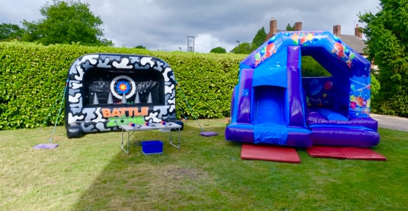 Make your next event a standout success with our bouncy castle hire, Party Combi Bouncy Castle and Nerf Shootout package in Bromsgrove, Redditch, Droitwich, Barnt Green, Chaddesley Corbett and all surrounding Worcestershire areas. Book today and let the fun begin! 🚀